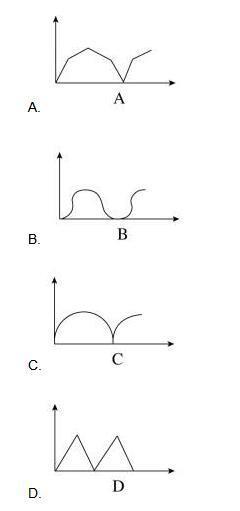 一正三角形小路如右图所示,甲乙两人从A点同时出发,朝不同方向沿小路散步,已知甲的速度是乙的2倍。问以下哪个坐标图能准确描述两人之间的直线距离与时间的关系(...