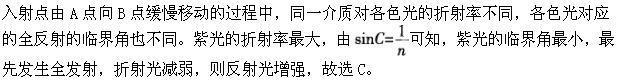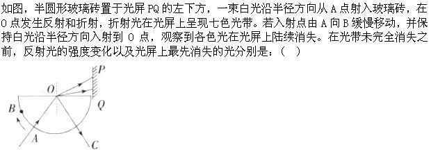 选项 A.减弱,紫光 B.减弱,红光 C.增强,紫光 D.增强,红光