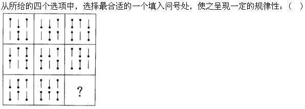 解析 每行前两个图形叠加得到第三个图形,叠加规律为:同为黑点变空白,否则为黑点。
