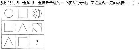解析 以第一行为例,第一个图是一个圆,第二个图有4条线,第三个图是将一个圆分成4部分,按照这种类比的方式,确定此题答案为B。