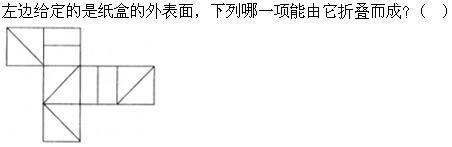 解析 题干图形中的任意三条斜线不会交于一点,A错误,也不会出现D中的排列;题干图形中的竖线和横线交于一点,B错误;C项可由左边图形折成。