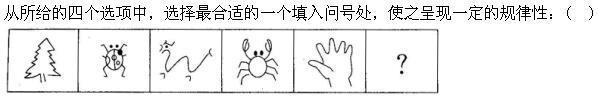 解析 奇数项图形是完全开放的,偶数项图形含有封闭区域,应选择一个含有封闭区域的图形。只有D项符合。