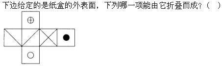 解析 由于两个斜线面的交点连着空白圆面而没有连着十字圆面,故B、D均错误,C项中若顶面和右侧面正确,则左侧面应为含叉的面,故C错误,答案为A。