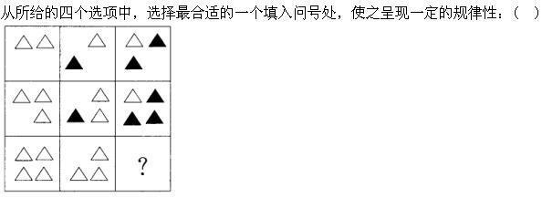 解析 每行前两个图形叠加得到第三个图形,叠加规律为白+白=黑,白+空白=白,黑+空白=黑,选择A。