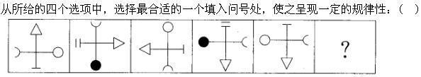 解析 奇数项图形依次逆时针旋转90°,偶数项图形依次顺时针旋转90°,由此选择D项。