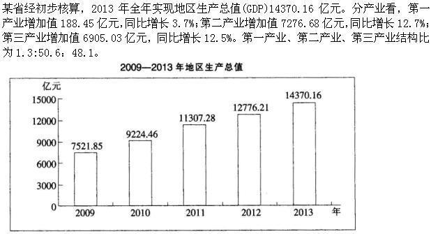 选项 该省从2010年至2013年GDP增长最快的一年是:( ) A.2010年 B.2011年 C.2012年 D.2013年