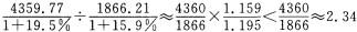 解析 根据第一段文字资料,2009年在规模以上工业增加值中,重工业增加值与轻工业增加值的比值为 ,观察选项,只有A项的数字小于2. 34,因此本题正确答案为A。