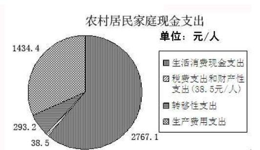 下图是2007年我国农村居民家庭现金支出情况,途中已标明各项支出金额,请根据图中信息回答下列问题: 生产费用支出占我国农村居民家庭现金支出的比重为...
