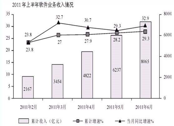 2011年上半年,我国软件产业实现软件业务收入8065亿元,同比增长29.3%,增速比去年同期高0.2年百分点;实现利润103亿元,同比增长34.9%。其...