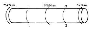 如图所示,直杆受扭转力偶作用,在截面1-1和2-2处的扭矩为: A. 5kN*m,5kN*m B. 25kN*m,-5kN*m C. 35kN...