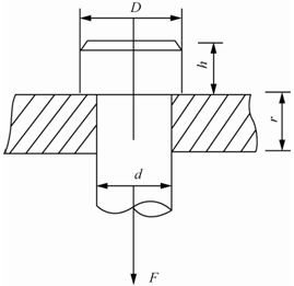 螺钉受力如图,已知螺钉和钢板的材料相同,拉伸许用应力[σ]是剪切许用应力[τ]的2倍,即[σ]=2[τ],钢板厚度t是螺钉高度h的1.5倍,则螺钉直径d的...