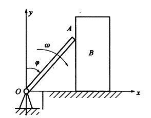 图示杠OA=l,绕定轴O以角速度ω转动,同时通过A端推动滑块B沿轴x运动,设分析运动的时间内杆与滑块并不脱离,则滑块的速度vB的大小用杆的转角ψ与角速度ω...