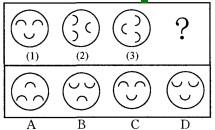 解析 (1) →(2)的规律是:“眼睛”和“嘴巴”逆时针旋转90°后分别翻转,故与(3) 相对应的图形是B项。