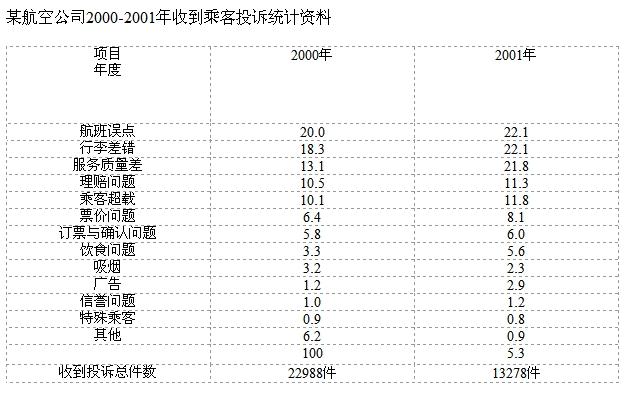 问题 该公司2000年接到有关票价的投诉意见的件数大约为() A. 220 B. 860 C. 1500 D. 1200