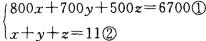 某单位为业务技能大赛获奖职工发放奖金,一、二、三等奖每人奖金分别为800、700和500元。11名获一、二、三等奖的职工共获奖金6700元,问有多少人获得...