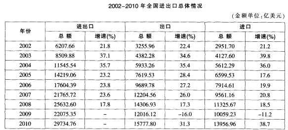 2010年进出口总额增速比2009年高()。A.20.8个百分点 B.21.4个百分点 C.31.5个百分点 D.48.6个百分点