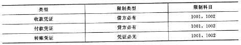 【参考步骤】单击基础设置——财务——凭证类别,出现凭证类别预置对话框,选择收、付、转类别,单击确定,出现凭证类别对话框,在收款凭证限制类型中选择借方必有,限制科目中选择1001和1002,同样的道理设置付款凭证和转账凭证的限制类别,设置完成以后单击退出。
