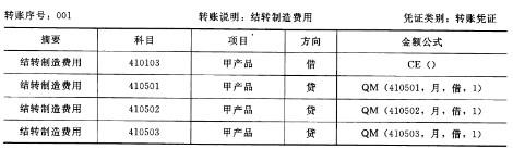 【参考步骤】单击总账——期末——转账定义——自定义结转,单击增加,输入转账序号001,转账说明:结转制造费用,凭证类别为转账凭证,单击确定,进入自动转账设置对话框,选择会计科目410103,方向为借,选择公式向导,选择借贷平衡差额函数,单击下一步.单击完成,单击工具栏增行,输入编号410501,选择方向贷,选择公式向导,选择期末函数,选择方向贷,单击完成,同样的步骤输入下面的内容,输入完成以后单击保存,退出。