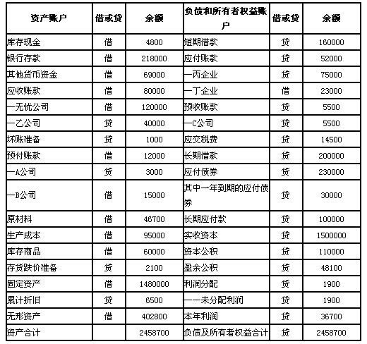 解析 (1)预付款项根据"预付账款"和"应付账款"科目所属各明细科目的期末借方余额合计数填列。预付款项=预付账款明细科目借方余额+应付账款明细科目借方余额=15000+23000=38000(元);(2)存货根据"原材料"、"库存商品"、"材料采购"、"生产成本"等科目的期末余额合计数,减去"存货跌价准备"科目期末余额后的净额填列。存货=原材料+生产成本+库存商品-存货跌价准备=46700+95000+60000-2100=199600(元);(3)应付账款根据"应付账款"和"预付账款"科目所属各明细科目的期末贷方余额合计数填列。应付账款=应付账款明细科目贷方+预付账款明细科目贷方=75000+3000=78000(元);(4)预收款项=预收账款明细科目贷方+应收账款明细科目贷方=5500+40000=45500(元),流动负债合计=短期借款+应付账款+预收款项+应交税费+其中一年到期的应付债券=160000+78000+45500+14500+30000=328000(元);(5)所有者权益合计=实收资本+资本公积+盈余公积+未分配利润=1500000+110000+48100+(1900+36700)=1696700(元)。注意:此处"本年利润"会结转至"利润分配--未分配利润"中,因此也应计入在内。