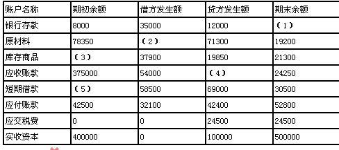 答案 第1小题:31000 第2小题:12150 第3小题:3250 第4小题:404750 第5小题:20000