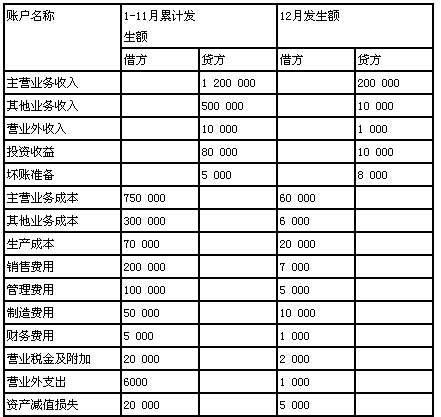 问题 甲公司所得税税率25%,该公司2011年1月至11月损益类账户累计发生额和12月损益类账户发生额如下: