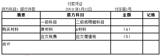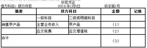 问题 请根据题目所述条件填列(1)-(5)处。 (1)甲企业200ⅹ年1月5日销售货物一批,价款10000元,增值税销项税率17%,收到购买单位支票一张,收讫后存入银行。出纳人员根据审核无误的原始凭证填制银行存款收款凭证。