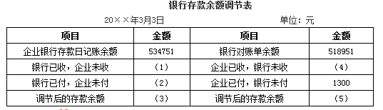 某公司20年3月末银行存款日记账余额534751元,银行对账单余额518951元,经核对,发现以下未达账项: (1)银行代企业支付本月电费2100元,银...