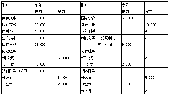 解析 存货=原材料+生产成本+库存商品=13000+6050+37000=56050元;应收账款=应收账款借方余额+预收账款借方余额=75000+7000=82000元;预收账款=预收账款贷方余额+应收账款贷方余额=30000+5000+8000=43000元;应付账款=应付账款贷方余额+预付账款贷方余额=8000+6400+2300=16700元;预付账款=预付账款借方余额+应付账款借方余额=3500+2000=5500元。