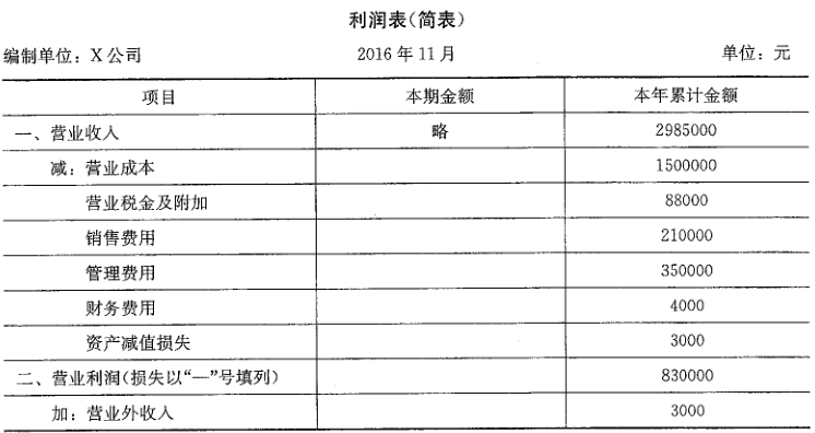 问题 X公司为增值税一般纳税人,适用的所得税税率为25%,2016年不存在纳税调整因素,2016年11月份的利润表如下表所示。