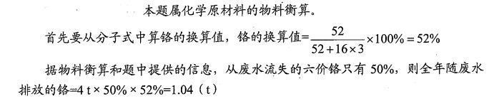问题 某电镀企业每年用恪酸酐(Cr03) 4t,其中约 15% 的铭沉淀在镀件上,约有25% 的铬以铬酸雾的形式排入大气,约有 50% 的铬从废水中流失,其余的损耗在镀槽上,则全年随废水排放的六价铭是( ) to (己知 Cr 元素原子量:52)