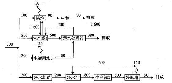 问题 某建设项目水平衡图如下图所示(单位m3/d) ,.项目的污水回用率为( )
