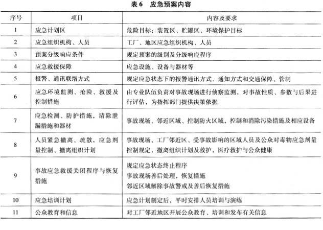 解析 根据《建设项目环境风险评价技术导则》,应急预案的主要内容见表6。