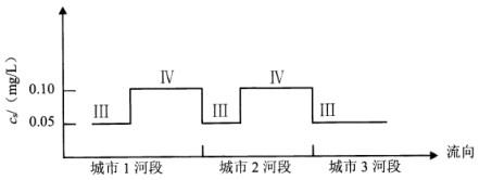 问题 流域3个相邻城市向同一河流干流排放某种难降解污染物,干流功能区目标(类别及限值)分布如下图所示: