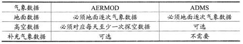 解析 AERMOD、ADMS模式气象参数收集的要求见下表: