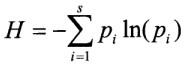 选项 A:H为群落的多样性指数 B:H为种群的多样性指数 C:pi为样品中属于第i种的个体比例 D:S为种数