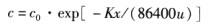 式中,C0表示初始浓度,mg/L,计算式为c0=(cuQu+ceQe)/(Qu+Qe),K表示一阶动力学反应速度,1/d;M表示河流流速,m/s;x表示沿河流方向距离,m;c表示位于污染源(排放口)下游x处的水质浓度,mg/L。