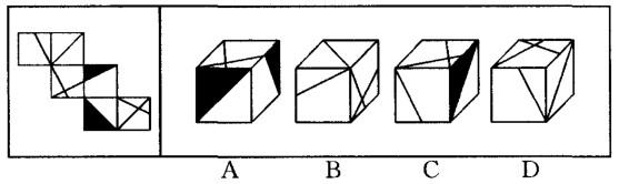 左边给定的是纸盒的外表面,下面哪一项不能由它折叠而成?