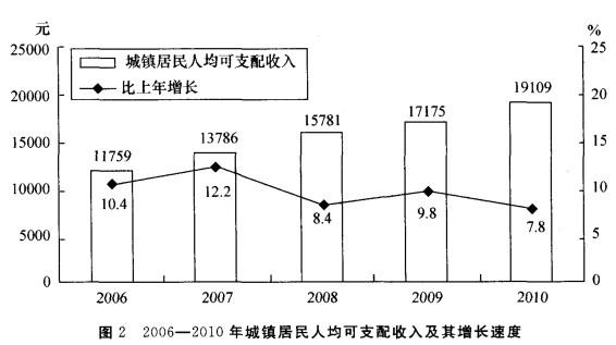 2010年,农村居民人均纯收入5919元,剔除价格因素,比上年实际增长10. 9%;城镇居民人均可支配收入19109元,实际增长7.8%。农村居民家庭食品...