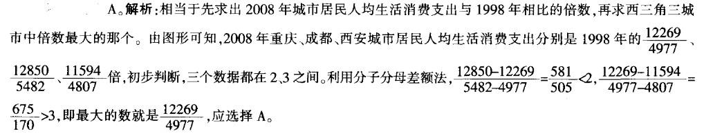 1998-2008年,城市居民人均生活消费支出年均增速最快的是()。 A.重庆市 B.成都市C.西安市 D.无法计算