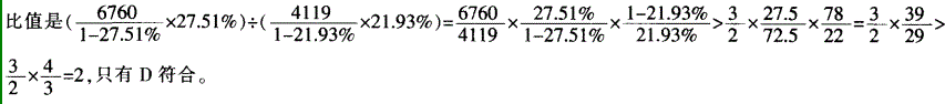 问题 国家工商总局公布的数据显示,2009年第一季度,全国工商行政管理机关共查处各类违法 违章案件68202件,同比下降29.98%;其中立案査处案件49654件,同比下降32.26%。案件总 值33.57亿元,同比下降21.26%,罚没金额3.33亿元,同比下降39.49%。 从违反法规看,违反企业登记管理法规案件9216件,同比下降38.54%;违反产品质量法 规案件6760件,同比下降27.51%;违反反不正当竞争法规案件4944件,同比增长6.51%;违反 商标法规案件4119件,同比下降21.93%;违反广告法规案件2141件,同比下降24.27%;违反 消费者权益保护法规案件1644件,下降13.66%;违反合同法规案件156件,同比下降57.02%。 从违法主体看,在立案查处的案件中,个体工商户案件22142件,同比下降22.73%;自然 人案件12472件,同比下降49.04%;公司案件6521件,同比下降21.37%;私营企业案件3957 件,同比下降22.27%;集体企业案件728件,同比下降45.26%。 2009年第一季度,违反产品质量法规案件减少量是违反商标法规案件减少量的几倍? A.1.25 B.1.56 C.1.77 D.2.22