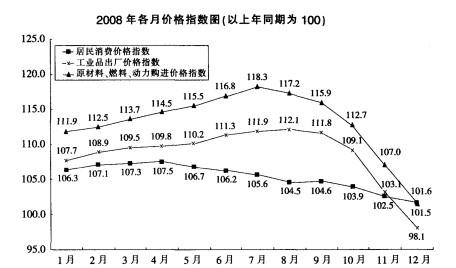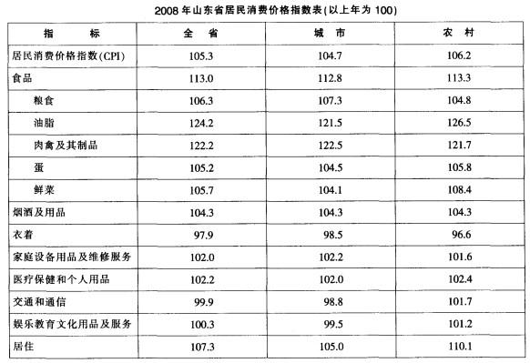 解析 2008年1-7月,山东省居民消费价格分月指数均大于当年居民消费价格指数105.3,一 共有7个月,应选择C。