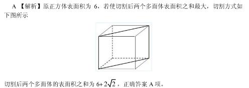 问题 将边长为1的正方体一刀切割为2个多面体,其表面积之和最大为:
