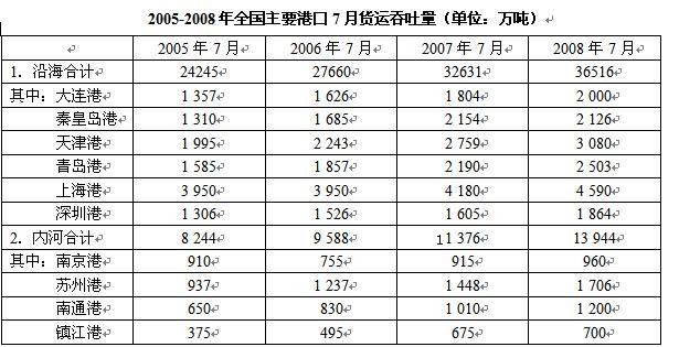 与2005年同期相比,上海港2008年7月货运吞吐量占沿海港口合计吞吐量的比重约: A.增加了3.7% B.减少了3.7% C.增加了5.3% ...