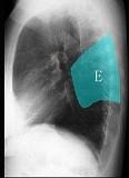 问题 如图所示正常胸部X线影像图像上,该英文字母所代表的肺段为 ( )