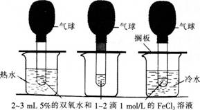 下面是某教师讲解温度对化学反应速率影响的教学片段:? 如下图:在三支相同的试管中分别加入2-3?mL约5%的双氧水.然后在每支试管中滴加2滴1?mol...