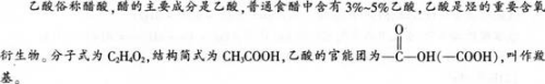 解析 (1)该部分内容的地位和作用:从教材整体上看,乙酸既是很重要的烃的含氧衍生物,又是羧酸类物质的代表物,它和我们的生活生产实际密切相关,从知识内涵和乙酸的分子结构特点上看,乙酸既是醇知识的巩固、延续和发展,又是学好酯(油脂)类化合物的基础。故本节有着承上启下的作用。 (2)知识与技能: ①了解乙酸的分子式和结构式,理解羧基的结构特点; ②理解酯化反应的概念;掌握乙酸的酸性和酯化反应等化学性质; ③能够初步熟悉乙酸的酯化反应实验的有关操作。 过程与方法: ①通过展示乙酸分子的球棍模型及实物,进一步认识乙酸的分子结构及其物理性质; ②采用复习回忆法及实验验证法学习乙酸的酸性; ③利用实验探究、设疑引导学生学习乙酸的酯化反应,明确酯化反应的实质。 情感态度与价值观: ①培养学生的观察能力,分析归纳思维能力; ②能够通过乙酸用途等的学习,认识化学与生产生活的密切联系,从而激发学习化学的兴趣。提高学习化学的积极性。 (3)教学重点:①乙酸的酸性;②乙酸的酯化反应。 教学难点:乙酸酯化反应的实质。 (4)教学过程 [导人一设疑激趣导人] 上节课我们学习乙醇的结构和一些重要的性质,知道它是酒的主要成分。那你又是否知道:为什么酒的年份越长味道就越香 厨师烧鱼时加醋并加点酒,鱼的味道就变得无腥、鲜美 通过本节课的学习我们就能够知道其中的奥妙。 [新课讲授] I.展示无水乙酸样品,让学生观察并总结乙酸的物理性质(颜色、状态和气味)。 Ⅱ.展示乙酸分子的球棍模型,让学生总结乙酸的化学式、结构式和结构简式。 Ⅲ.根据结构决定性质,带领学生通过几个小实验研究一下乙酸的化学性质。 [师]根据初中已学知识,大家说说乙酸有什么性质 [生]弱酸性。 [师]根据下列药品,设计实验证明乙酸具有酸性。 药品:镁条、NaOH溶液、Na2CO3粉末、乙酸溶液、酚酞 [学生自主设计实验] [实验一]乙酸与镁的反应 [实验二]乙酸与碳酸钠的反应 通过观察实验现象、写反应的方程式引导学生得出乙酸具有酸性与乙酸的酸性比碳酸强的结论. 教师再次提问,是否还有其他方法,学生提出NaOH,进而引导学生设计实验验证。 [归纳]通过前面几个小实验可以证明乙酸具有酸的通性:能与活泼金属、碱、盐等物质发生反应。乙酸的酸性比硫酸、盐酸等的酸性弱,但比碳酸的酸性强。 观看“除去水垢”漫画.说出其中的道理. 观看漫画“喝醋解酒”,引出酯化反应的实验。并做演示实验。 通过学生的观察、教师的提问与讲解、小组讨论、动画演示等方式对酯化反应的原理、实验现象及原因、注意事项呈现在课堂上. 教师讲解乙酸的用途. [巩固提高] 通过课堂练习巩固拓展知识点. [小结] 学生和老师共同总结本节课学习到的内容. (5)催化剂;吸水剂。
