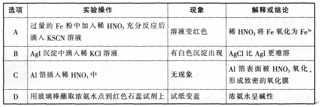 问题 下列有关实验操作,现象和解释或结论都正确的是(  )。