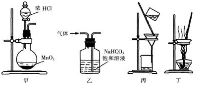 选项 A.用装置甲制取氯气 B.用装置乙除去氯气中的少量氯化氢 C.用装置丙分离二氧化锰和氯化锰溶液 D.用装置丁蒸干氯化锰溶液制MnCl