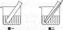 ②再另取一支洁净的试管,在试管里同样加入1?mL?2%的AgNO3溶液,然后边振荡试管边逐滴滴入2%的稀氨水,至最初产生的沉淀恰好溶解为止,再滴入3滴乙醛,振荡后向试管内插入一根玻璃棒,再把插有玻璃棒的试管一起放在热水浴中温热(如图二所示)。