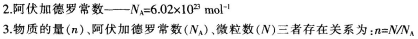 解析 (1)教学目标 知识与技能:理解物质的量及其单位——摩尔的含义,识记阿伏加德罗常数的数值,了解物质的量与物质微粒数目的关系,能进行物质的量与它们之间的换算。 过程与方法:通过概念的推导及应用,提升逻辑推理、抽象概括以及运用化学知识进行计算的能力。 情感态度与价值观:培养演绎推理、归纳推理的辩证逻辑能力.激发学习兴趣。 (2)教学重、难点 教学重点:理解物质的量是一个物理量,摩尔是物质的量的单位;识记阿伏加德罗常数;能够进行物质的量、微粒数之间的简单换算。 教学难点:物质的量与微粒数之间的换算。 (3)教学过程简案 【教学导人】在化学实验室做实验时,取用药品都是用器具称量的,而物质间发生的化学反应是原子或分子之间按一定数目关系进行的,这些原子或分子我们肉眼直接看不到,也难以称量。那么,可称量物质的质量与组 成它们的分子数目之间该怎样联系呢能否用一定数目的粒子集合体来计量它们之间的关系呢这节课我们就一起来学习能解决这个问题的新的物理量——物质的量,下面我们来看如何将宏观世界与微观世界联系起来。 【新课学习】 教师讲述:教师通过类比长度、质量、时间、电流等物理量,阐述物质的量也是国际单位制的7个基本物理量之一.是一个基本物理量。1971年,第十四届国际计量大会决定用摩尔作为计量原子、分子或离子等微观粒子的物质的量单位,符号为mol,简称摩。本节课我们将重点学习物质的量及其单位,它能够把难以称量的微粒与易称量的微粒集体联系起来。 教师板书:物质的量是表示含有一定数目集体的物理量(符号:n),它是联系宏观和微观的桥梁。 教师提问:物质的量能否称为物质量或物质质量为什么 学生回答:不能。 教师讲解:正如时间、质量这些物理量一样,“物质的量”是物理量,是一个专有名词,不是词组,不能随意增添或简化任何字,不能拆开理解,物质的量是一个整体,物质的量单位是摩尔(mol)。 教师提问:使用摩尔时,为什么必须指明基本粒子及其组合 学生交流:摩尔适用于微观粒子。 教师讲解:摩尔只适用于微观粒子。因为阿伏加德罗常数很庞大;例如:6.02×1023粒大米平均分给10亿人,则每人可得1500万粒大米。所以阿伏加德罗常数用于微观世界才有意义。使用时,必须指明微粒符号是分子、原子、离子还是电子等。 教师提问:1mol是什么意思1mol粒子数目是多少呢(教师启发学生,正入丈量布匹一样,用尺作基准是必然的,那么计算微粒的基准是什么呢) 教师板书:基准——阿伏加德罗常数:0.012kg12C中所含的原子数,符号NA,单位——mol-1,数目约为6.02×1023。 教师讲述:1mol任何微粒所含的微粒数与0.012kg12C所含的碳原子数相等。比如1molH2O含有6.02×1023个H2O,1mol氧原子约为6.02×1023个。 教师提问:每摩尔物质含有阿伏加德罗常数个微粒。已知某物质的微粒数,能否计算出其中含有微粒的物质的量呢 教师讲解并板书:物质的量(n)、阿伏加德罗常数(NA)、微粒数(N)三者存在关系为:n=N/NA 【小结作业】 小结:通过本节课我们学习了物质的量的概念、单位,知道了阿伏加德罗常数的数值,了解了物质的量与物质微粒数目之间的换算。 作业: 1.判断正误 (1)1mol氢()(2)1mol大豆()(3)0.5molH2() 2.填空 2molO2约含()O2,9.03×1023个O2是()mol。 【板书设计】 物质的量及其单位摩尔 1.物质的量及其单位 (1)物质的量(n)是表示含有一定数目粒子集体的物理量。 (2)摩尔——物质的量单位,符号mol